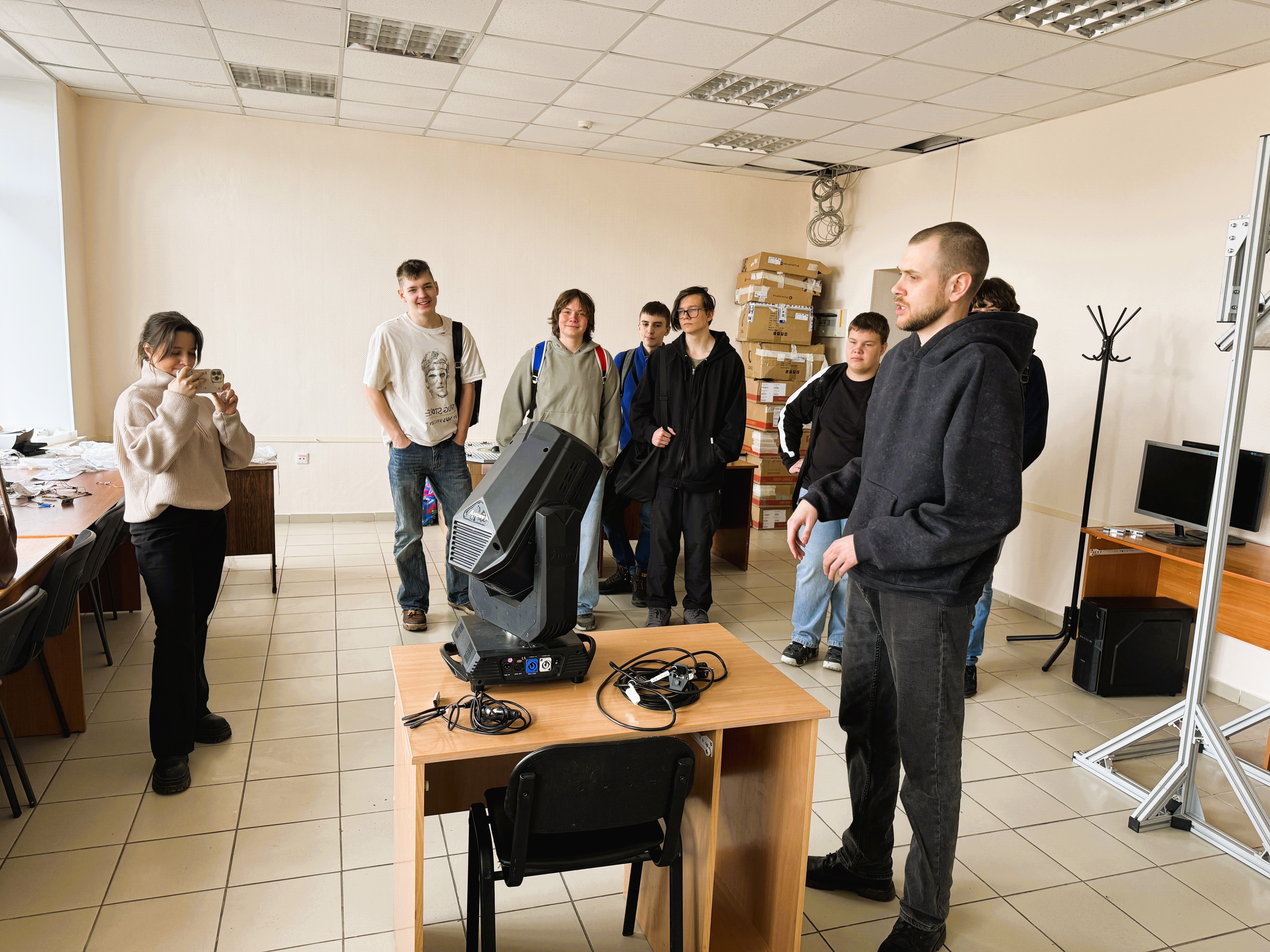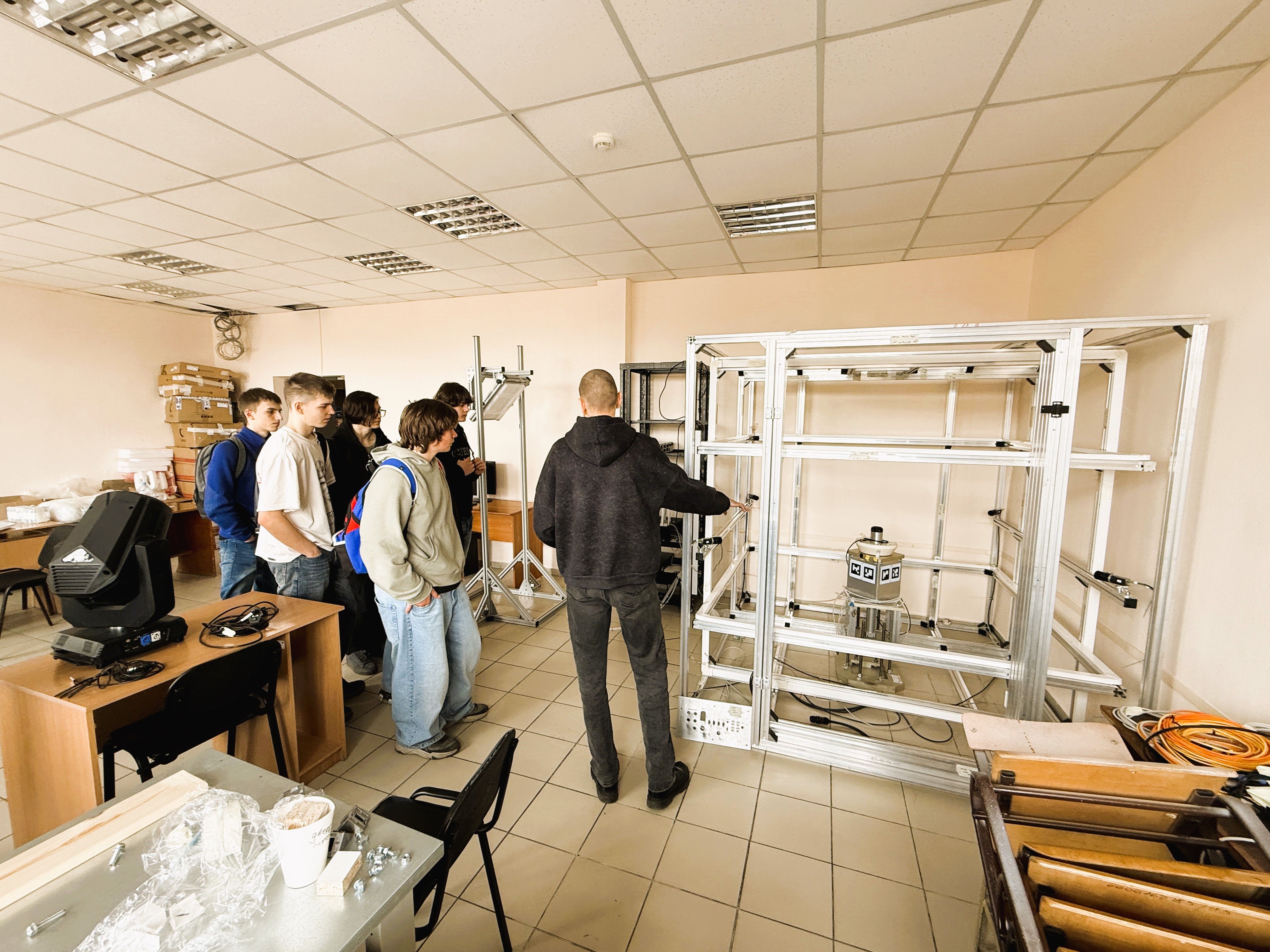 В рамках проекта Space-π специалисты научно-производственной лаборатории «Малые космические аппараты» СибГУ им. М. Ф. Решетнёва провели экскурсию для учеников 9–10 классов Красноярской частной школы «Взлетай», в ходе которой им показали стенд полунатурного моделирования на этапе сборки.