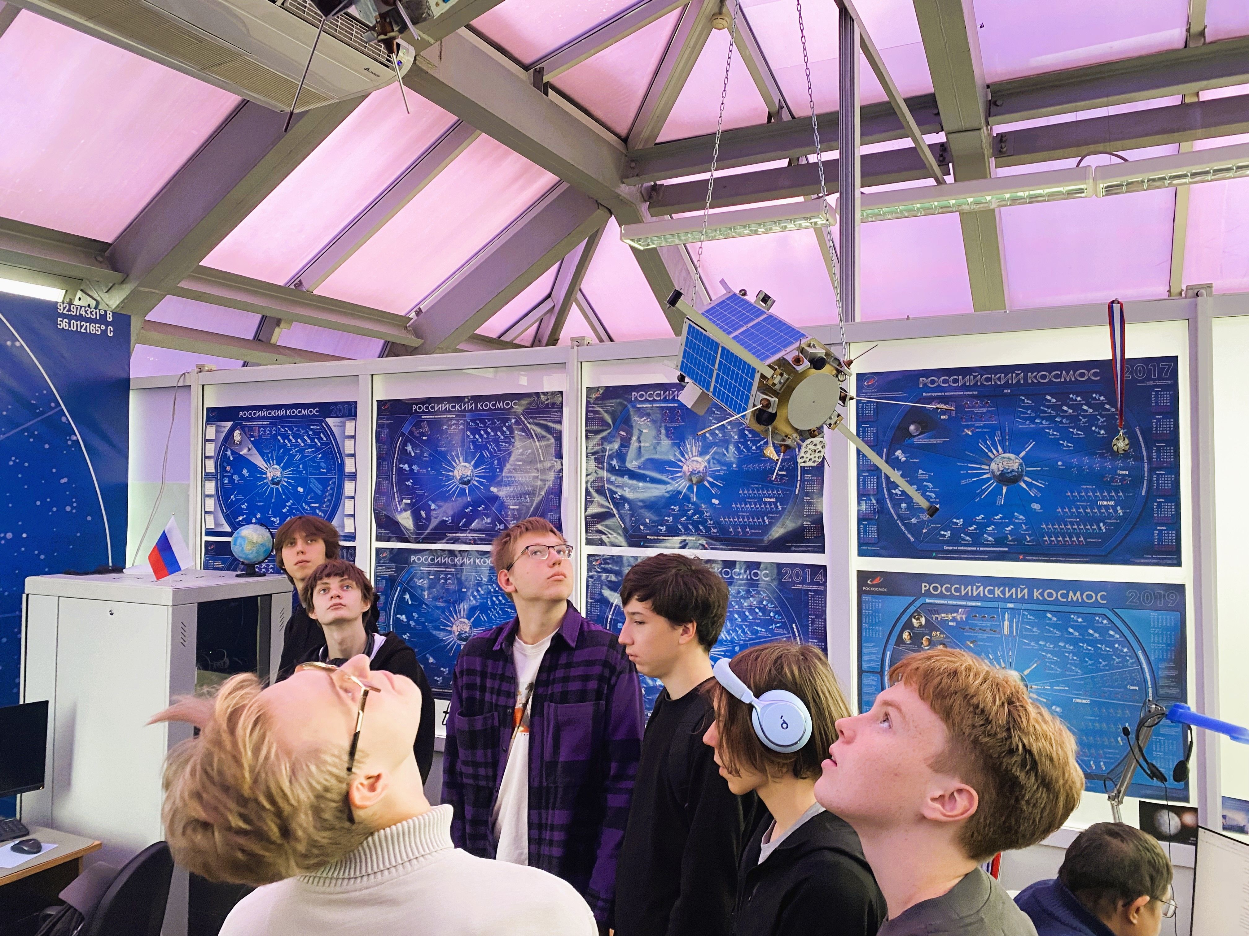 Ребята увидели полноразмерные макеты упомянутых выше спутников и узнали о том, как космические аппараты запускают на околоземную орбиту, как принимаются и обрабатываются данные, а также об их использовании в научных исследованиях.