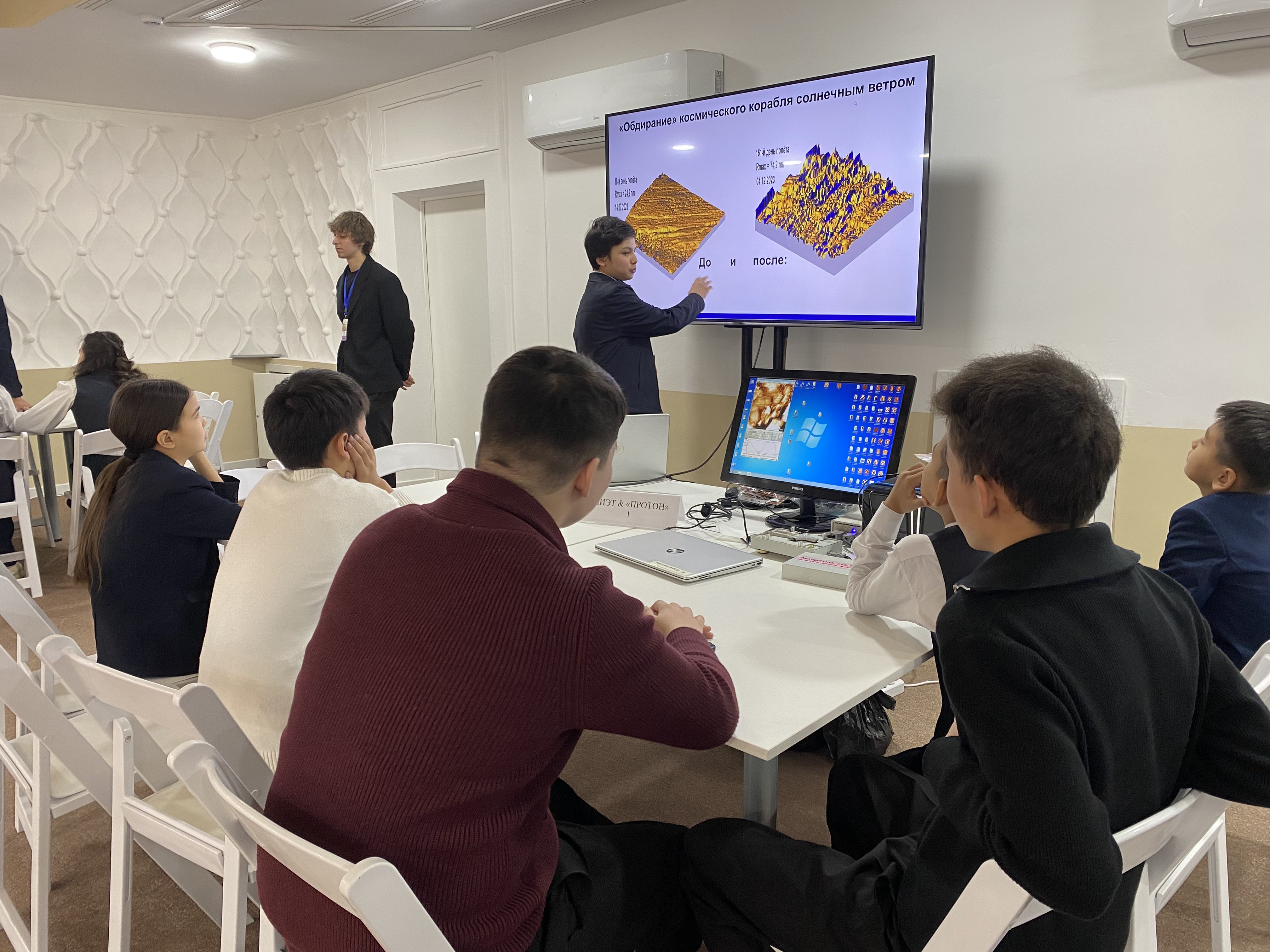 Так, в рамках представления космического аппарата «Нанозонд-1», молодёжными командами республики Казахстан решалась задача по исследованию наноструктур при воздействии солнечного излучения. Работали школьники под руководством Логинова Бориса Альбертовича, начальника отдела приборостроения АО «Завод ПРОТОН», начальника научно-исследовательской лаборатории атомной модификации и анализа поверхности полупроводников НИУ МИЭТ.