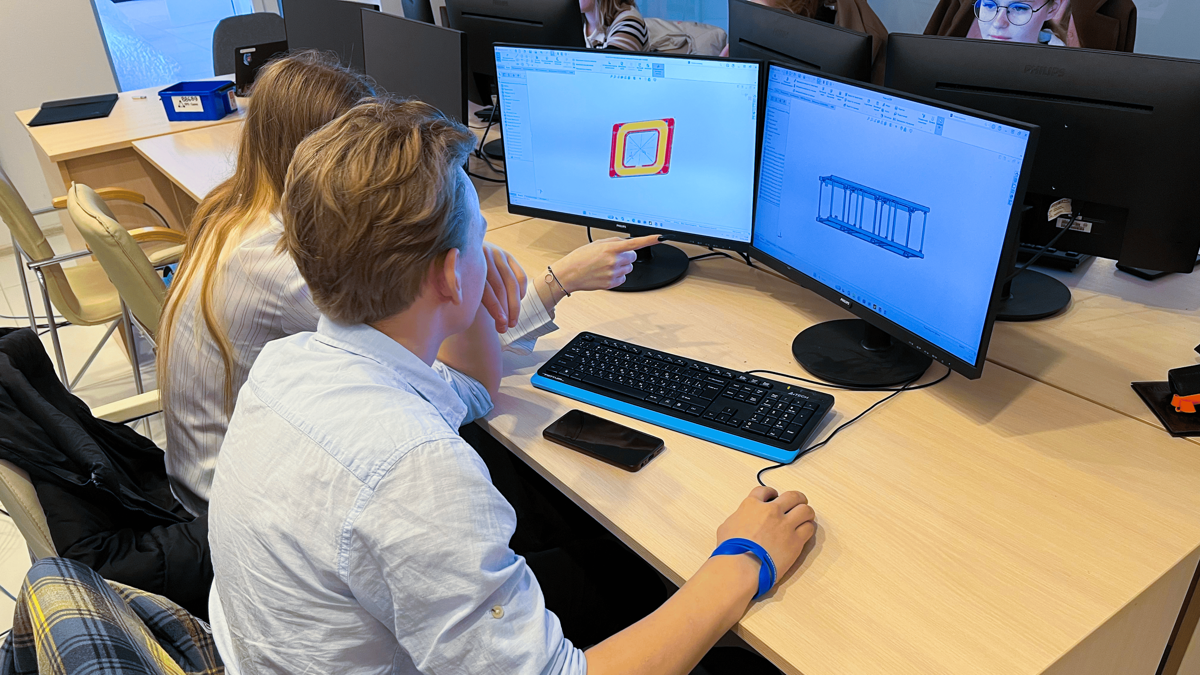 В программе были занятия по бортовым системам кубсатов, космической баллистике и наземной инфраструктуре, встречи с инженером-конструктором, разработчиком электроники и оператором спутников, а также экскурсия по Геоскану. Школьники выполняли конструкторские задачи в специализированном ПО, составляли полётное задание для спутника и разбирались, как принимаются сигналы с МКА. Особенной частью мероприятия стала практика, в том числе сборка кубсата.